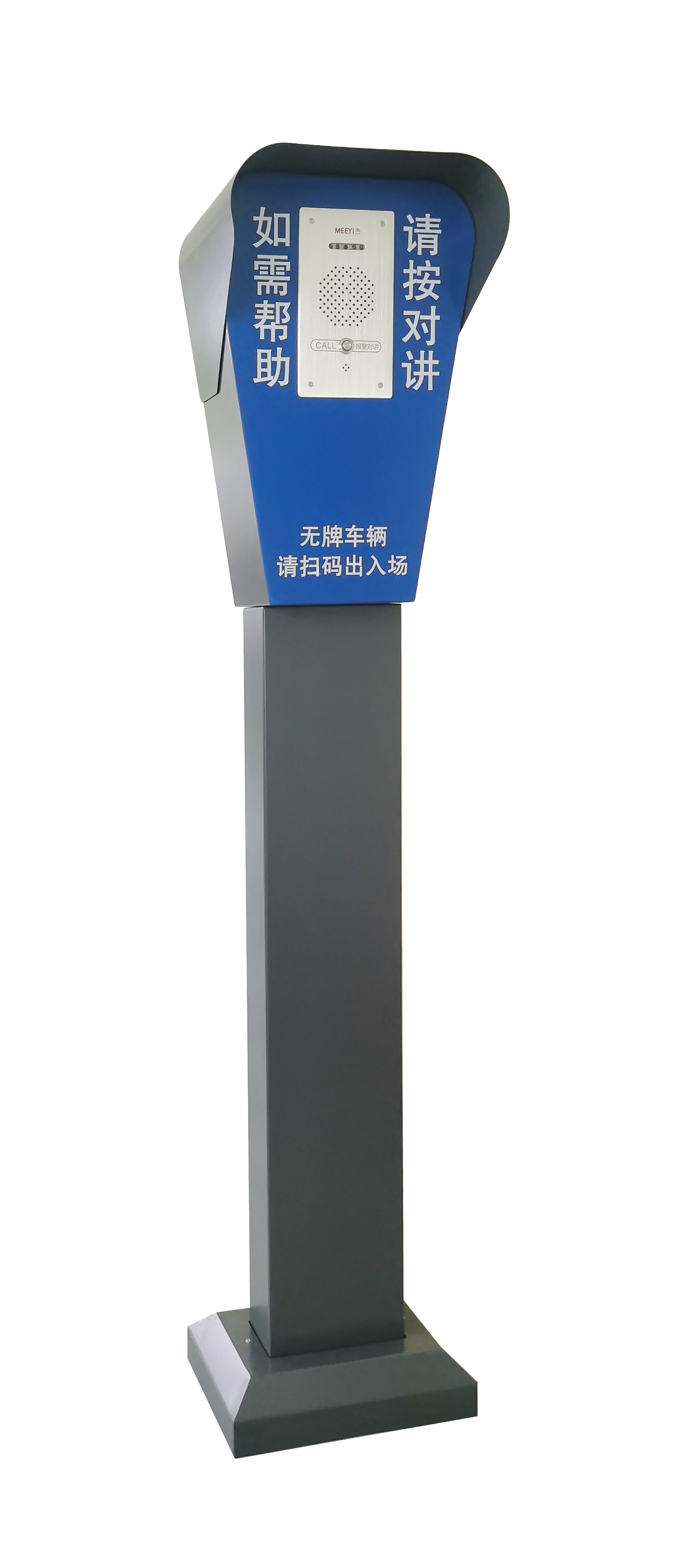 一般放置于停车场、广场等开放公共场所出入口,用于求助对讲使用,并可配合停车场管理系统,显示停车小程序/应用的二维码的信息。